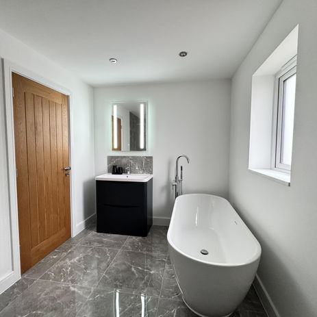 As you ascend to the first floor there is a spacious landing boasting natural light and provides access to all five generously proportioned bedrooms, each offering ample space and natural light inviting you to retreat. The family bathroom serves the remaining 3 rooms and features a modern sleek design to relax and unwind. Comprising of a toilet, sink with storage below and light-up vanity, tiled splash back, matching tiled flooring, large walk-in shower enclosure and a freestanding bath providing a hotel-like luxurious feel and heated towel radiator.