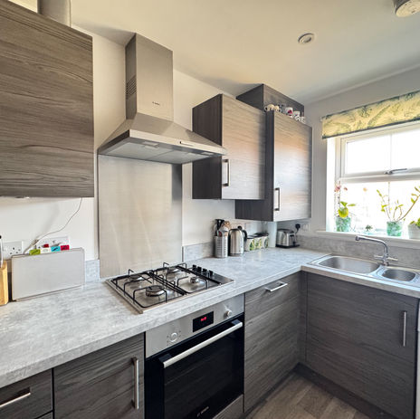 The kitchen/diner is positioned at the front of the property, It offers a friendly setting for family gatherings, boasting room for a dining table. Comprising of fitted wall and base units, integrated fridge/freezer, dishwasher, sink below the window, gas hob, fan oven below and extractor above, wall mounted boiler housed within the cabinetry and space for washing machine.